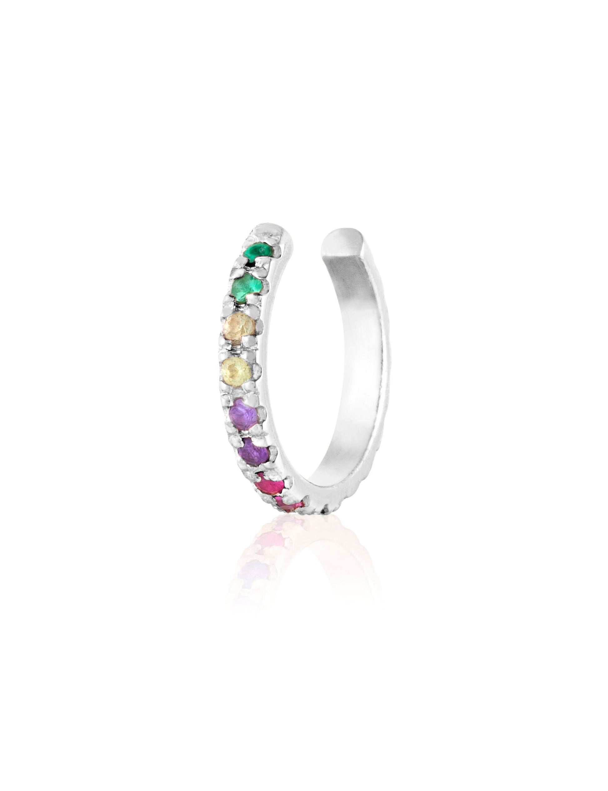 שיבוץ: זירקונים צבעוניים: ירוק, צהוב, סגול, ורוד וכחול, בגודל 1.8 מ״מ